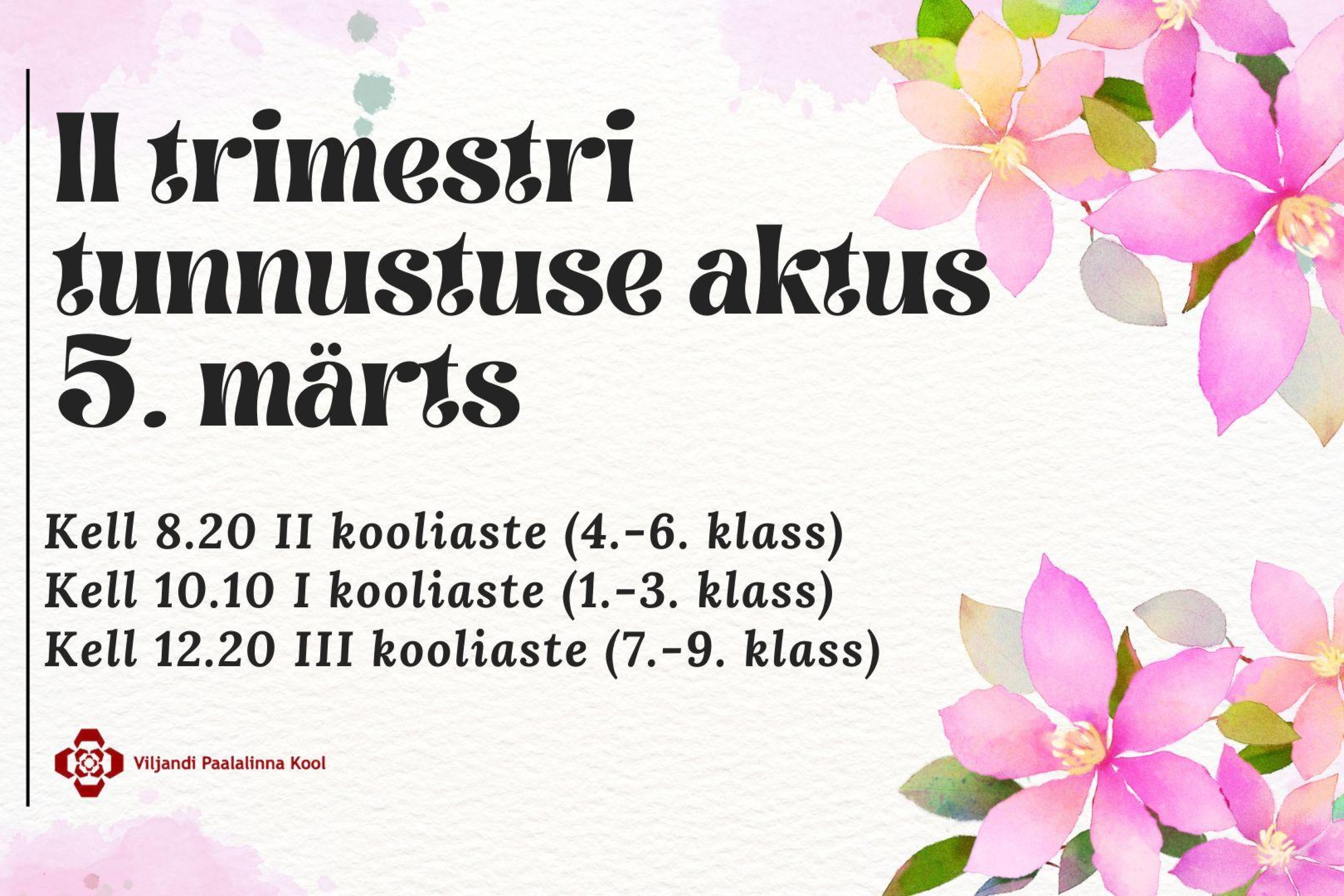 Vilistlaste nädal Loomise kuupäev 09.10.2025 Autor Laura-Liisa Lehtmets Paalalinna kooli 60. sünnipäeva tähistamine Loomise kuupäev 08.10.2025 Autor Laura-Liisa Lehtmets Paalalinna kooli liikumispäev 2025 Loomise kuupäev 03.10.2025 Autor Laura-Liisa Lehtmets Avatud koolisööklate nädal 6.10-10.10 Loomise kuupäev 29.09.2025 Autor Laura-Liisa Lehtmets Vaata rohkem