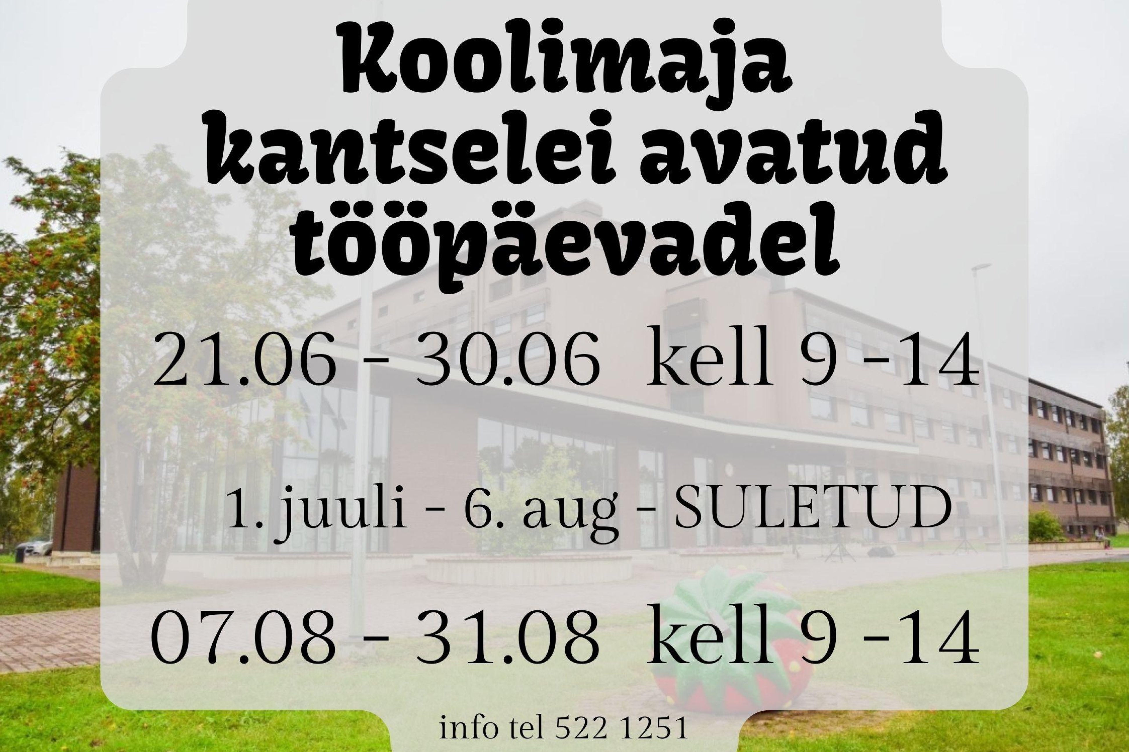 Koolimaja lahtiolekuajad suvel 2023.a.