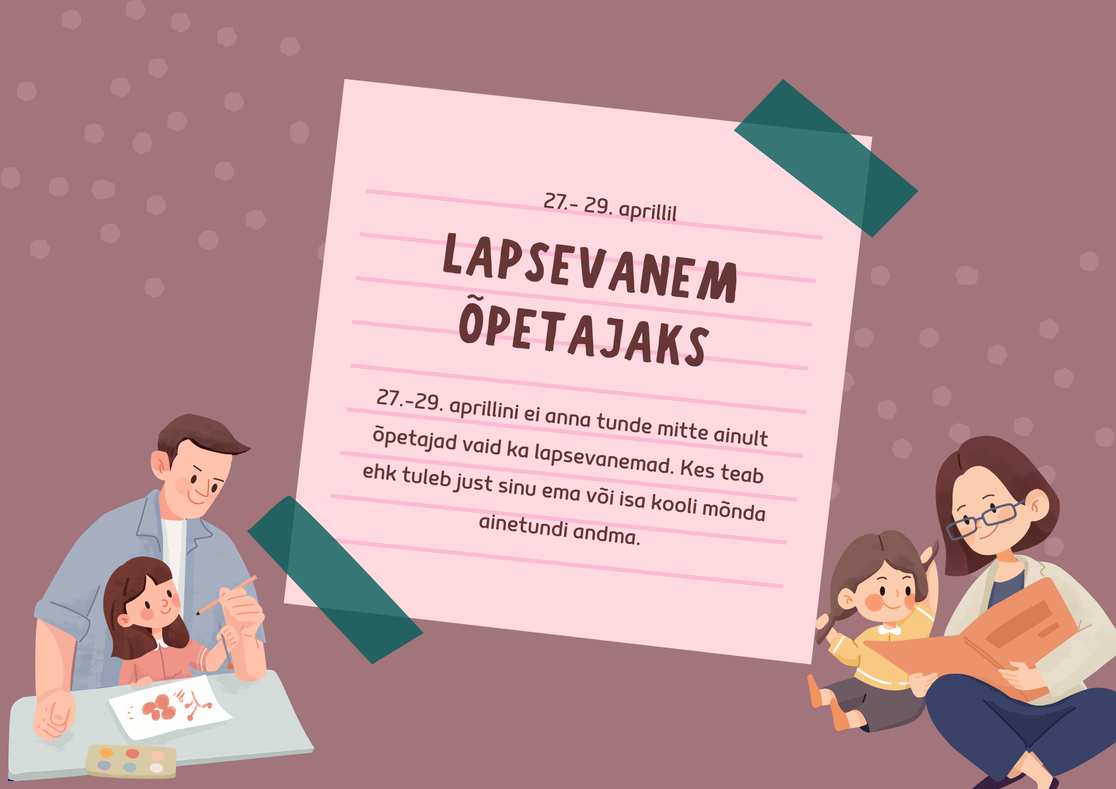 NÜÜD on sul võimalus kolmel päeval, 27., 28. või 29. aprillil ise tulla kooli ja seista oma lapse klassi ees õpetajana.